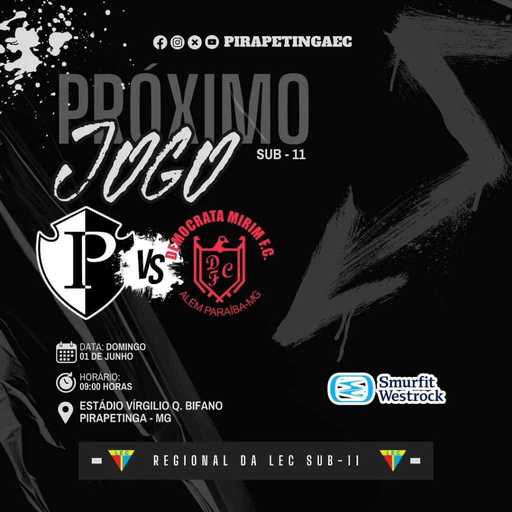 Neste sábado, 1º de junho de 2025, os olhares do futebol de base da região se voltam para o Estádio Virgílio Quedeves Bifano, em Pirapetinga. A equipe Sub-11 do Pirapetinga Esporte Clube (PEC) fará sua aguardada estreia oficial enfrentando o tradicional Democrata Mirim Futebol Clube, em um confronto que promete muita emoção e talento em campo. A partida está marcada para as 9h da manhã.